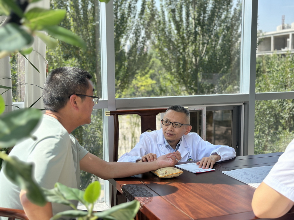 8月18日,青海省西宁市中医院脾胃病科副主任张永德为患者看诊。(西宁市中医院供图)