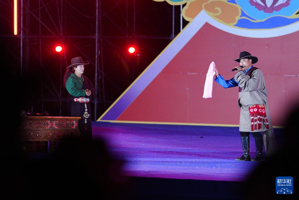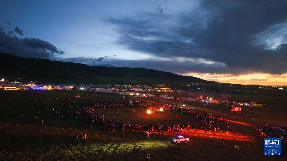 观众在活动主会场参与锅庄晚会(8月15日摄,无人机照片)。