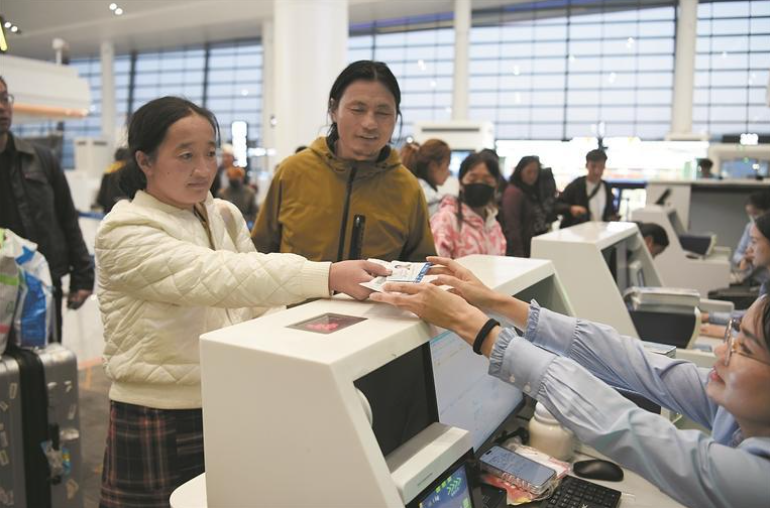 果洛藏族自治州今年第七批76名组团式就业人员,在果洛州完成岗前培训后,于10月18日21时,从西宁转机飞赴上海、浙江宁波等长三角地区就业。截至目前,果洛州通过上海援青搭台、当地政府组织,308名农牧区富余劳动力实现了从“家门口”横跨千里,直达“厂门口”的一站式就业。(李兴发 摄)